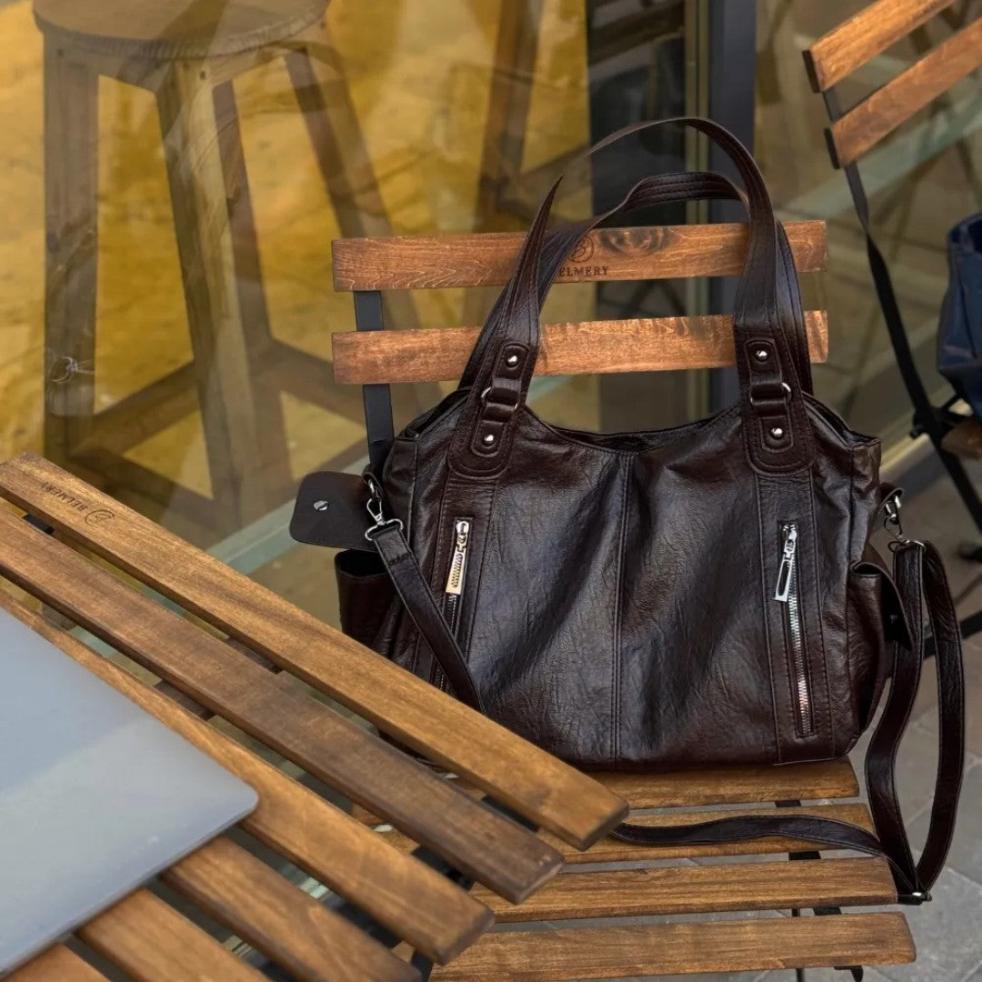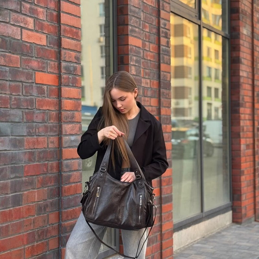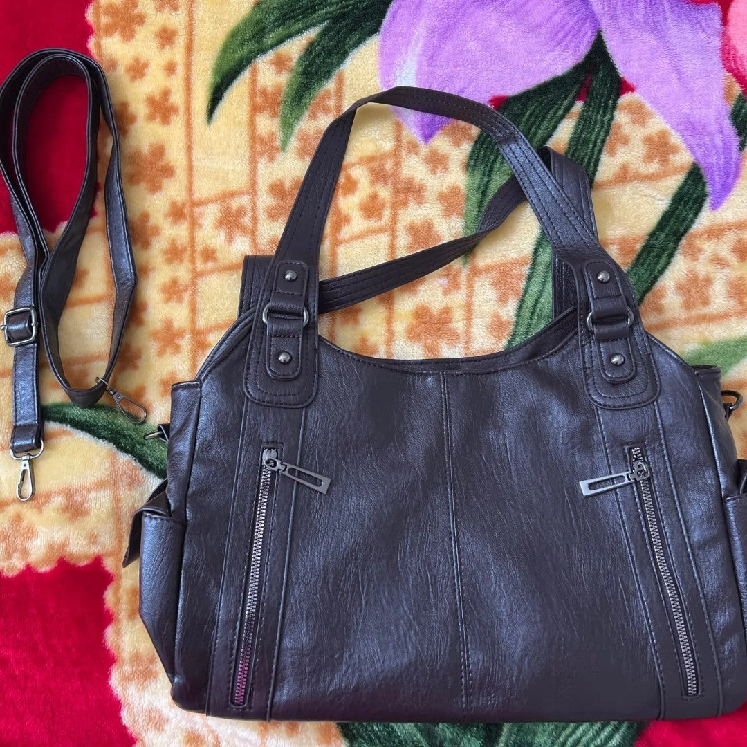 Very practical bag – I carry it on my shoulder most of the time, but the crossbody strap is super handy when I need my hands free